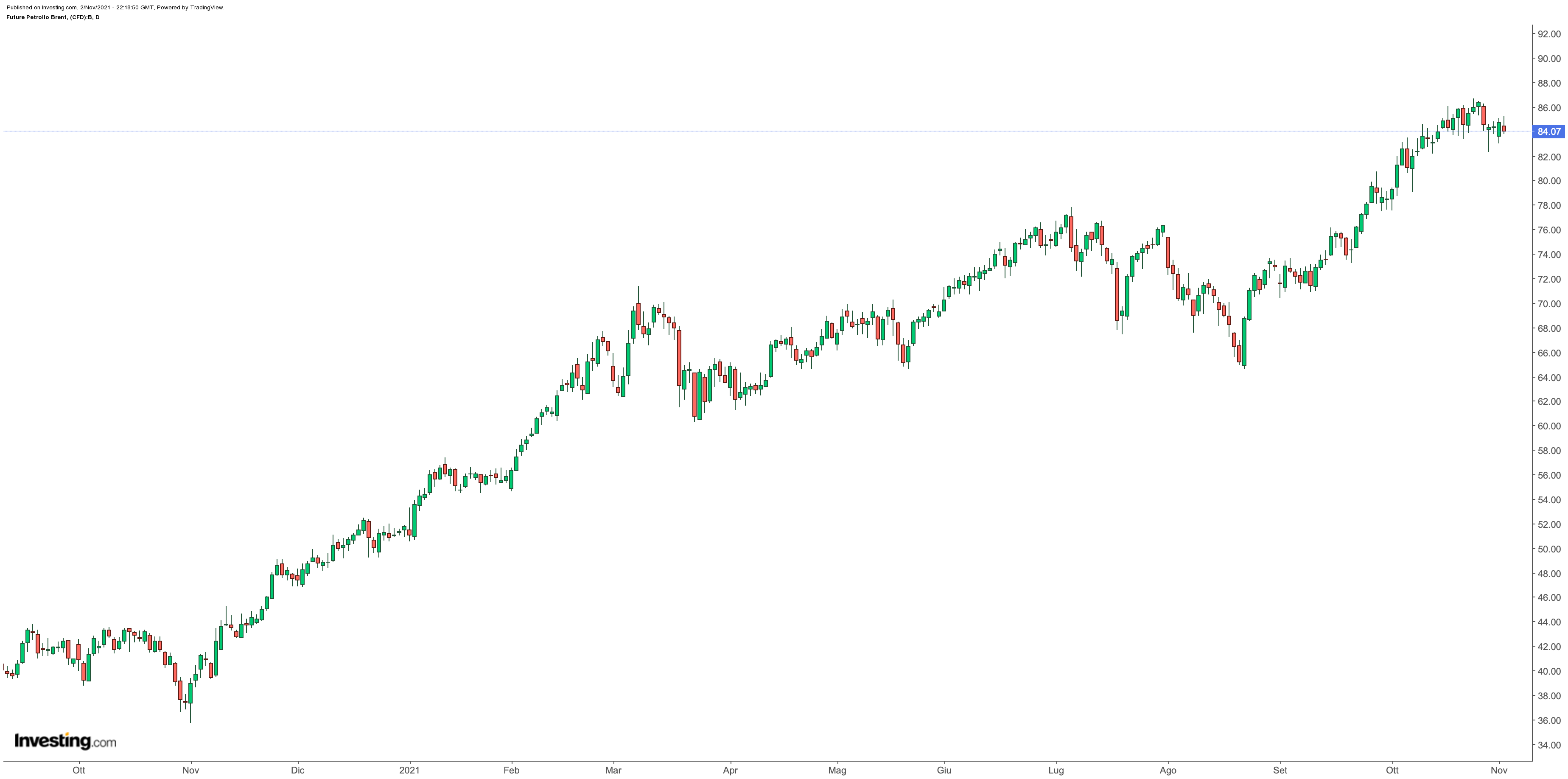 Il risultato di quanto esposto nelle righe appena sopra è un deficit di offerta globale di circa 2,5 milioni di barili al giorno, secondo Goldman Sachs Group, i cui analisti affermano che il consumo di petrolio raggiungerà livelli record all’inizio del prossimo anno.