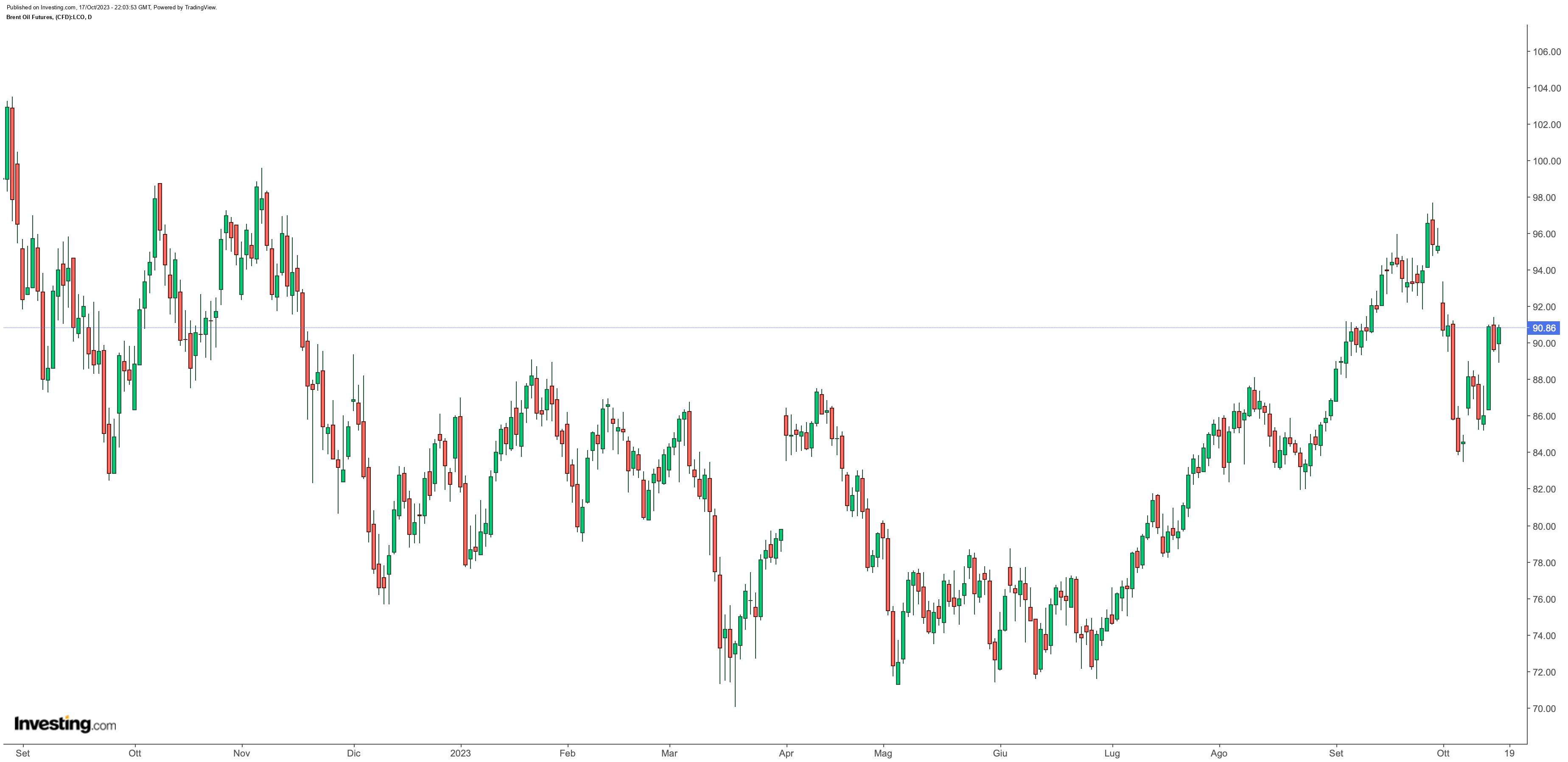 I prezzi del petrolio sono crollati bruscamente poiché le prospettive economiche sempre più cupe hanno intensificato i timori di un rallentamento della crescita della domanda, eclissando le preoccupazioni sull’offerta, ma le quotazioni del barile sono tornate a crescere con lo scoppio del conflitto in Medio Oriente.